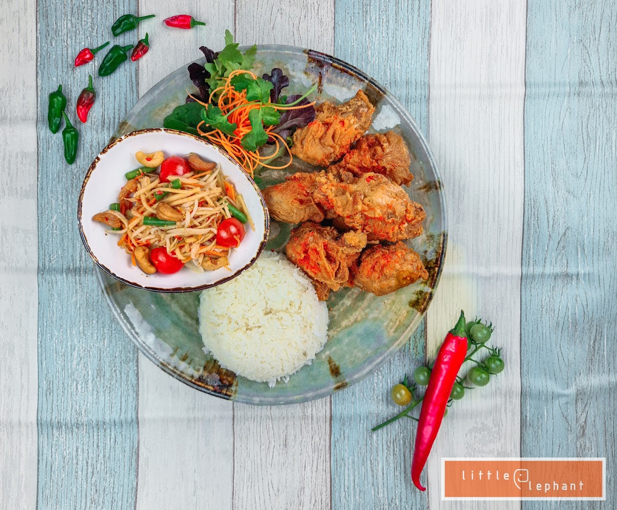 Popular dishes at Little Elephant include the tantalizing Chicken Red Thai Curry and Beef with Cashews, which perfectly balances the creaminess of coconut milk with the heat of red curry paste. For something hearty, try the Lamb Shank, tender and slow-cooked to perfection. If you’re a fan of noodles, Drunken Noodles and Pad Kee Mao are both flavorful, while the classic Pad Thai Noodles and the delicious King Prawn Pad Thai never disappoint. For those who prefer something lighter, the Tom Kha Soup is a great option-rich with coconut, lime, and lemongrass.